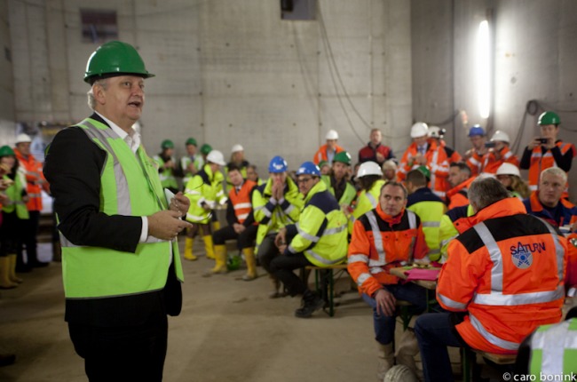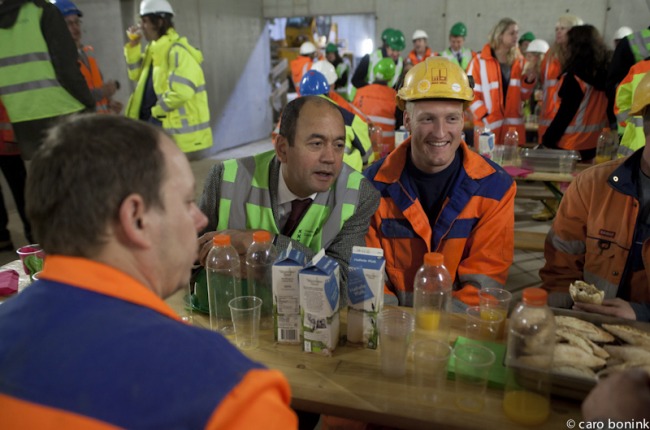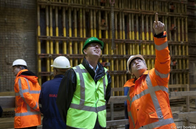 Op 6 november heeft het College van Burgemeester en Wethouders een bezoek gebracht aan de het metrostation Vijzelgracht om medewerkers van de Noord/ Zuidlijn en de bouwers te bedanken voor hun inzet tijdens de lekkage op 24 september jl. Er werd een lunch in de bouwput georganiseerd en het College kreeg een korte rondleiding met uitleg. Meer foto’s op Hollandse Hoogte en Flickr!